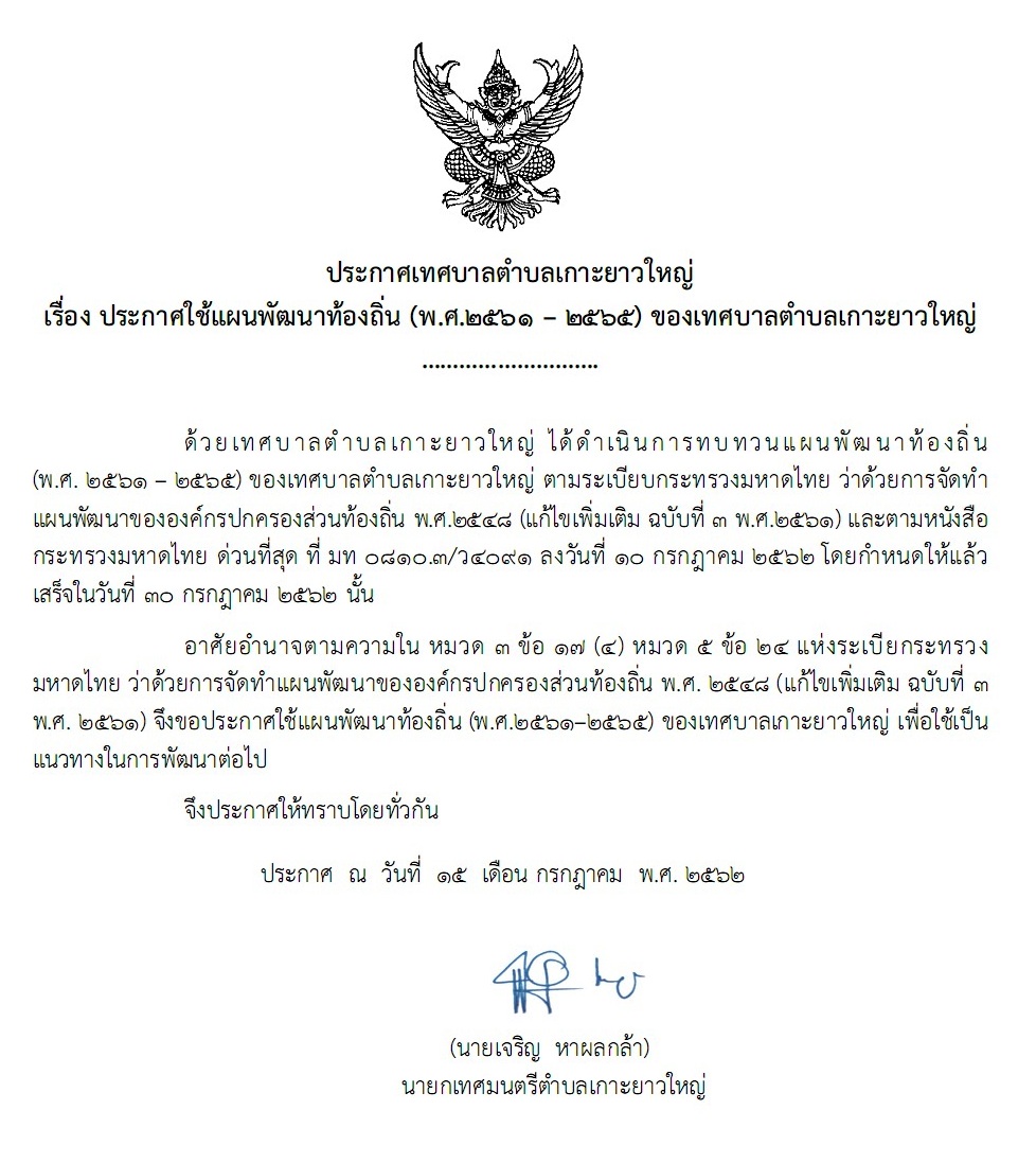 เทศบาลตำบลเกาะยาวใหญ่ ต.เกาะยาวใหญ่ อ.เกาะยาว จ.พังงา 82160