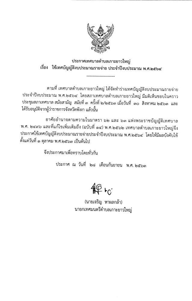 เทศบาลตำบลเกาะยาวใหญ่ ต.เกาะยาวใหญ่ อ.เกาะยาว จ.พังงา 82160