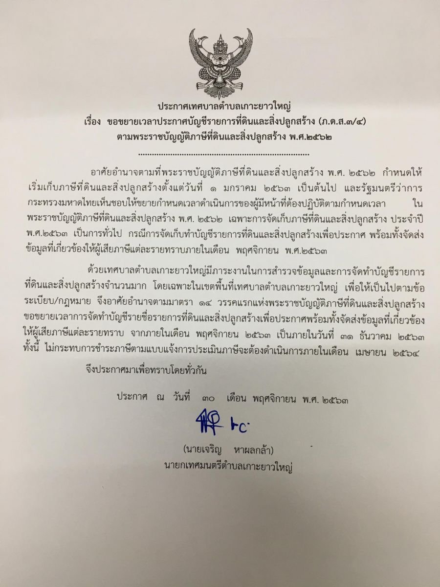 ขอขยายเวลาประกาศบัญชีรายการที่ดินและสิ่งปลูกสร้าง (ภ.ด.ส.๓/๔)