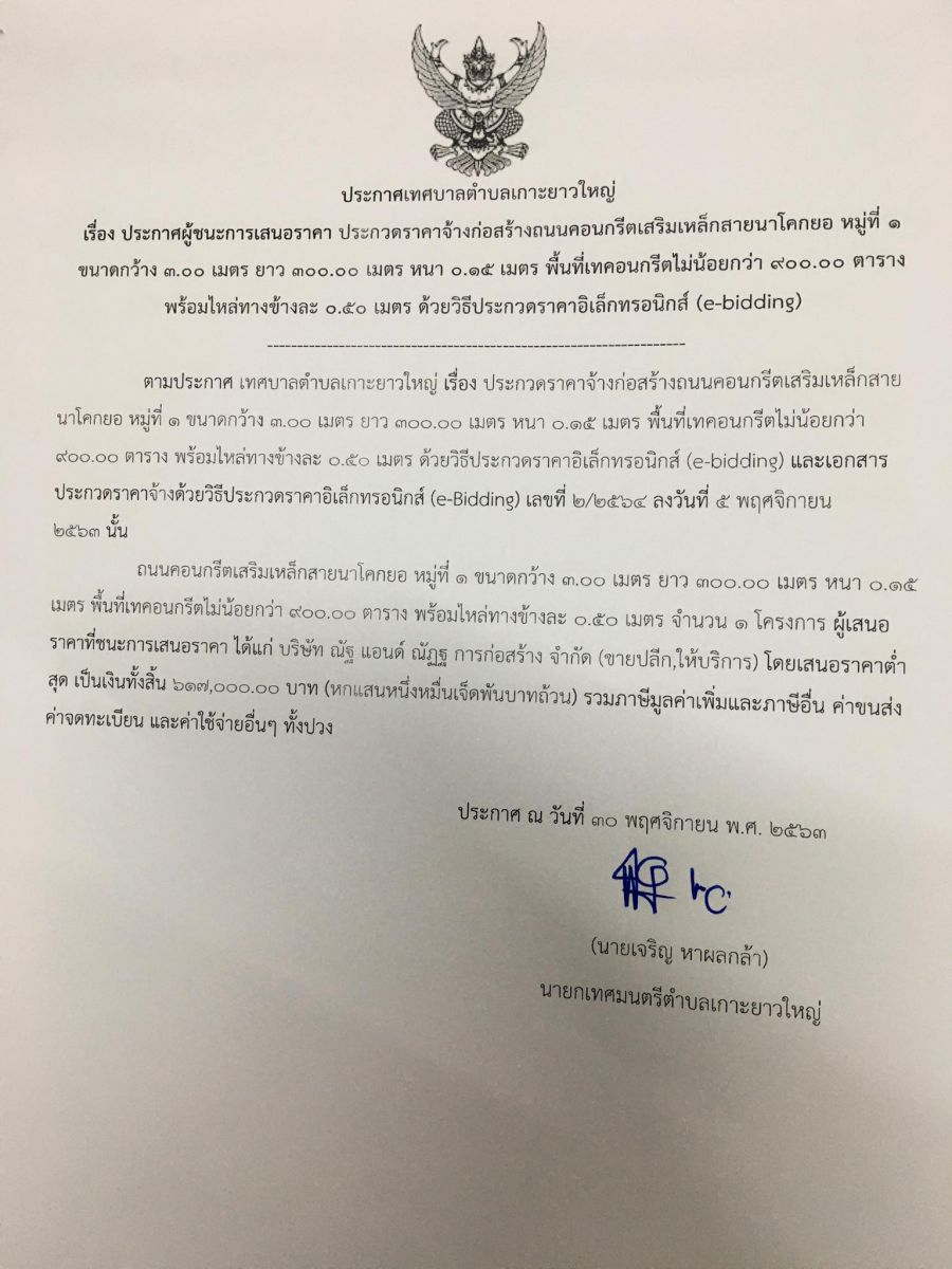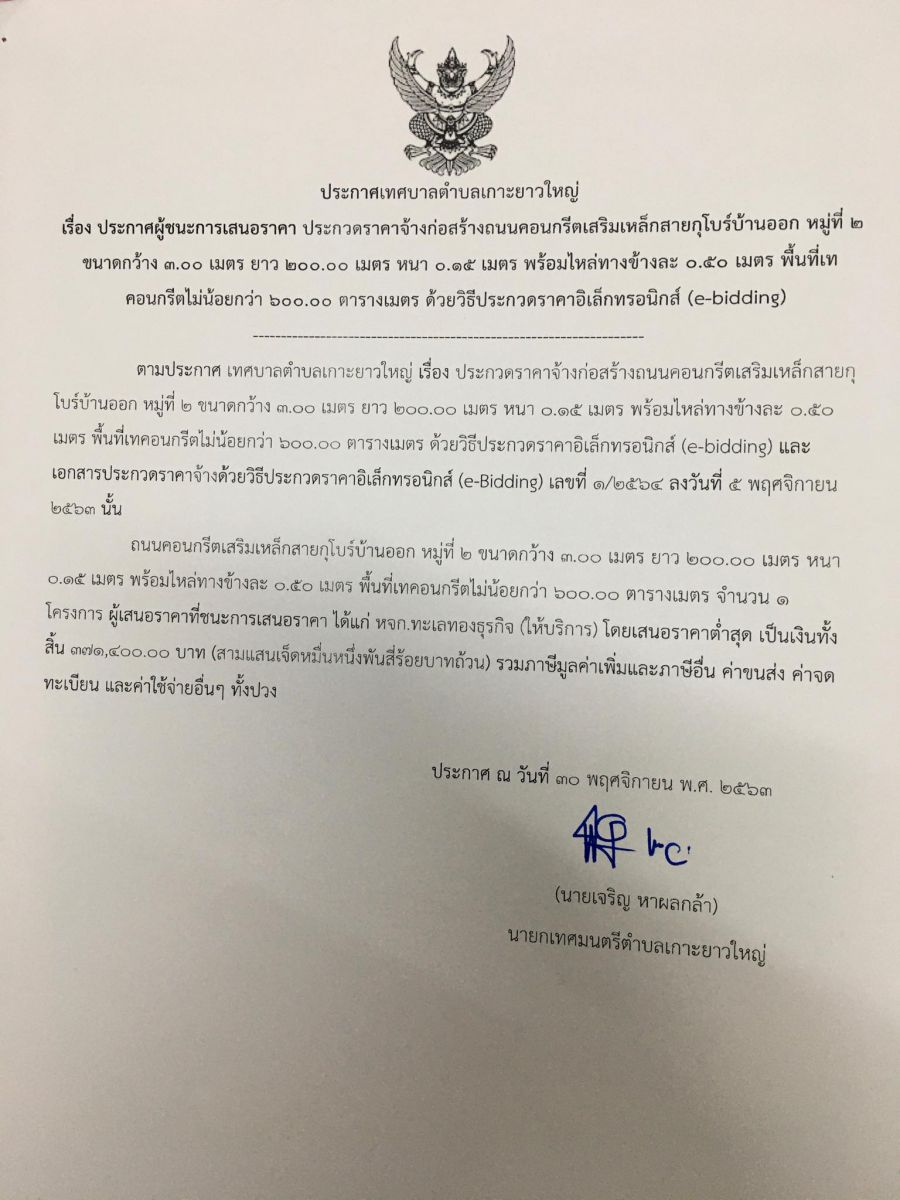 เทศบาลตำบลเกาะยาวใหญ่ ต.เกาะยาวใหญ่ อ.เกาะยาว จ.พังงา 82160