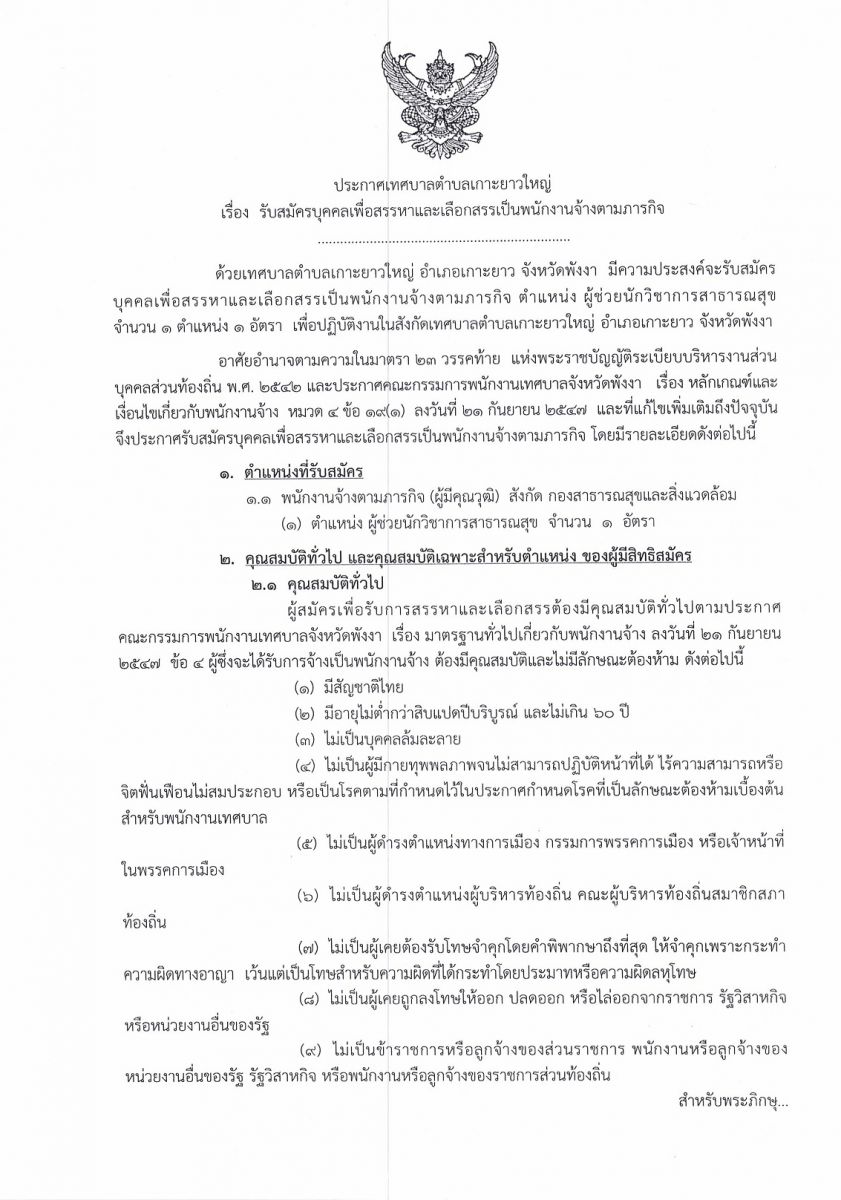 เทศบาลตำบลเกาะยาวใหญ่ ต.เกาะยาวใหญ่ อ.เกาะยาว จ.พังงา 82160